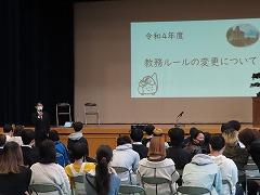 教務部より、1学期末考査の取り扱いと1学期の成績、また生徒指導部より夏休み中の過ごし方などの話がありました。