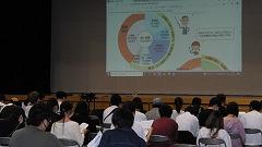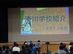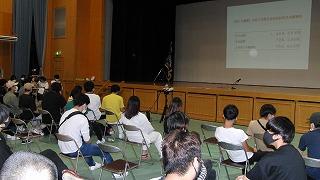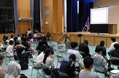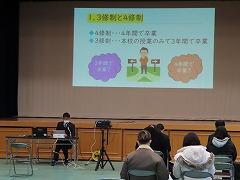 学校長の挨拶で始まり、カリュキュラムなどの説明の後、生徒会役員から学校行事や部活動について写真を交えながら紹介を行いました。