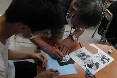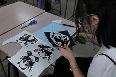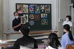 講師に、姫路市立姫路高等学校美術常勤講師の川瀬陽子先生をお迎えしてワルリー画のランチョンマット作りを行いました。
