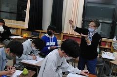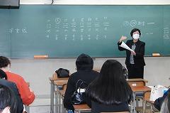 湊川(みなとがわ)高校(こうこう)の先生(せんせい)が日本語(にほんご)を教(おし)えています。