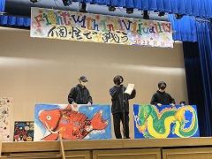 最初は、各クラスで個性を入れ製作した「パネル芸術作品発表」です。