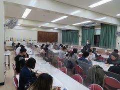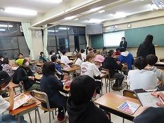 学校長の挨拶で始まり、生徒会役員による学校紹介及び授業見学を行いました。また、多くのみなさんに給食の試食をしていただきました。