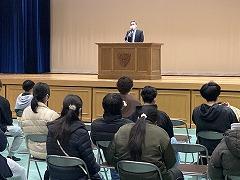 ㈱ライセンスアカデミーより講師をお招きし、1~4年生全員を対象にして、進学講演会を行いました。