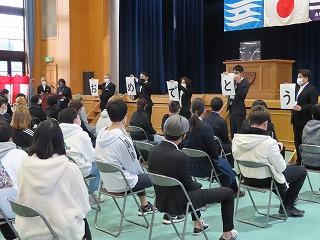 2021年度の生徒会役員選挙が5月21日に告示され、6月4日、会長・副会長立候補者の立会演説会が行われました。