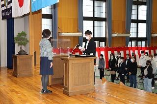 新入生は、生徒会長より温かい歓迎の言葉をいただきました。