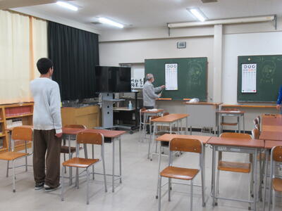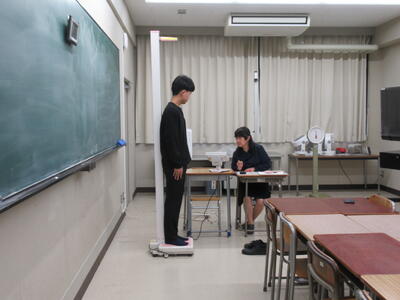 身長体重を測定する部屋では、身長が伸びた、体重が増えたと賑やかな様子でした。