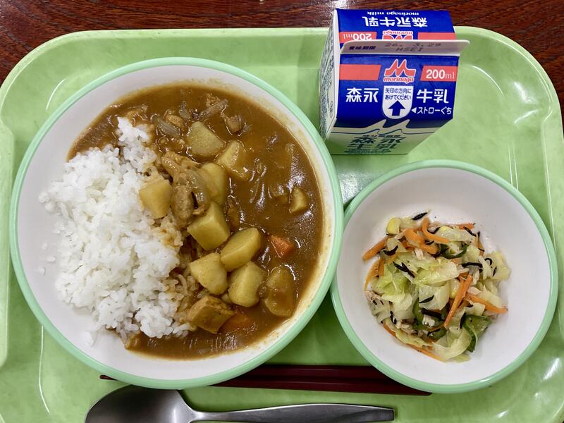 【献立】チキンカレー、海と畑のサラダ、牛乳