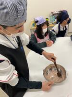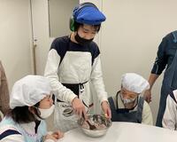 中学部2年では3学期の終わりに調理実習をしました。図書室でお菓子作りの本を楽しみに読んでいる人も多く、学級活動でカップケーキを作ることにしました。クラスのみんなで、道具を用意する人、材料を計量する人、材料を混ぜる人などの役割を話し合って決め、協力して作りました。カップケーキが焼けてくるといい匂いがしてみんなの期待は高まり、出来上がってオーブンレンジを開けたときには拍手が起こりました。自分で作った充実感もあるのでしょう、焼きたてケーキをみんなでおいしくいただきました。