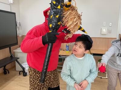リアルな赤鬼がやって来るとみんな大興奮!恐々投げる子も笑顔で投げる子もいましたが、みんな節分を体感してくれたと思います!