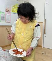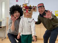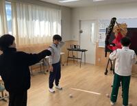 節分の学習で、鬼のお面を作ったり、鬼に豆を投げたりしました!事前学習として鬼のお面を作って写真を撮った後、お面を付けた鬼役に豆を投げる練習をして鬼が来るのを楽しみに待ちました。