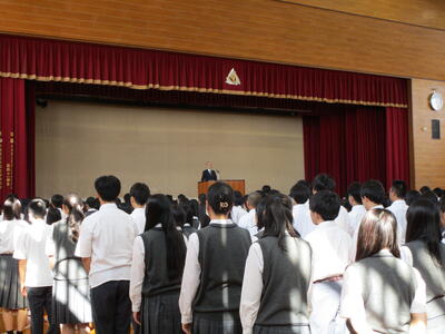 一覧へ 1. 令和7年度「後期始業式」 投稿日時: 10/02 システム管理者 令和7年10月2日(木) 令和7年度「後期始業式」が行われました。 ・後期始業式: 開式の辞 学校長式辞 校歌斉唱 閉式の辞 ・全校集会: 生徒指導部長講話