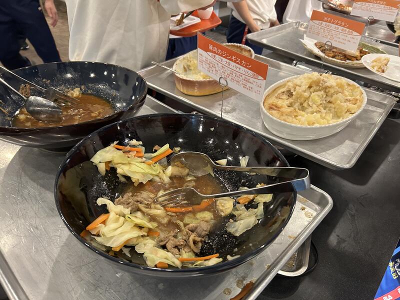 食事はビュッフェ形式です。いろんな種類があり、好きなおかずをとってお腹いっぱいになったようです。