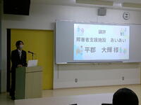来賓には社会福祉法人福成会 生活介護あいあい 主任生活支援員 平郡 大輝 様をお招きし、報告会の講評をお願いいたしました。生徒にわかりやすいようにゲームに例えて、自分自身の知識や技術を増やすことがアイテムを獲得することにつながり、攻略していける手段となることを教えていただきました。また、お世話になった実習先の施設長さまや実習指導者の方々にもお越し頂き、生徒の学びを聞いて頂くことができました。お忙しい中本当にありがとうございました。