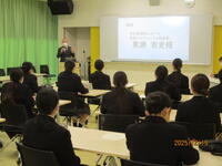 特別養護老人ホーム 武庫アルテンハイム施設長 黒瀬 吉史 様にお越しいただき、最後に講評をいただきました。3年間学んだことは何一つ無駄ではなく、どのような道に進んだとしても必ず糧となると伝えてくださいました。また、何かを一人ですることには限界があるが、仲間と協力することが重要であると教えていただきました。そして、明日が当たり前に来るとは限らないこと、一人ひとりの命や尊厳を大切にすることなど、実習を通しての学びを振り返ることができました。3年次の実習にもたくさんの施設にお世話になりましたこと、改めてお礼申し上げます。