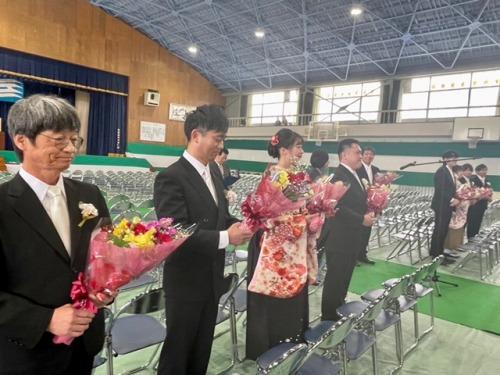 当日は生徒全員、PTAも希望者は参加でき、来賓や樟友会、地域の方々と一緒に会場でお祝いしました。