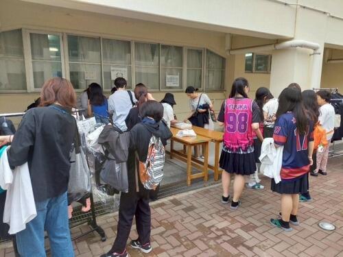 6月12日木曜日、第78回鳴高祭の日に体育館下で、生活文化委員の活動で制服リサイクルを実施