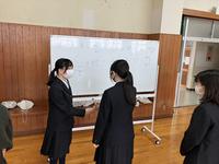 総合人間類型の二年生が、尼崎北高校養護教諭 四郎園千華子先生を講師として、「避難所の役割と、災害時に高校生ができること」の出前講座を受講しました。西日本豪雨災害での復興支援に携われた体験談をもとに、避難所の役割や、ボランティアの心得について教えていただきました。授業の後半は、鳴尾高校が避難所になるとしたら、どのように設営すればよいかを班に分かれて考え、より具体的なイメージを抱くことができました。