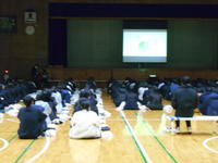 2022年12月23日(金)、各学年集会において生徒にフィリピンに送る救援物資の募集を行いました。その結果数多くの救援物資(未使用の歯ブラシ・タオル・石鹸・Tシャツ)と(使用したものも含む鉛筆・ノート)を回収することができました。