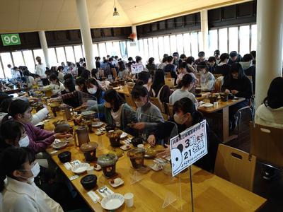 白い服を着ていたみなさんは、恐る恐る食べていました