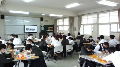 今日は総合人間類型の1年生が、入学前オリエンテーションを受けました。最初に総合人間類型についての説明と1年間の学びについて、総合人間類型担当の教員からパワーポイント資料を用いた説明を受けました。次に手話甲子園について教員から手話を用いた説明を受けました。最後に総合人間類型75期3年生がリーダーになって「仲間づくりゲーム」を体験し、3年生から「これからの学びへの励まし」の言葉を受けました。