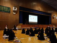 各自が立てた仮説に対して、アンケートやインタビューなどのフィールドワークから見い出した結果等をパワーポイントを用い、持ち時間6分で発表をしました。司会と計時係も生徒が務め、皆様のご協力により無事終了することができました。ありがとうございました。