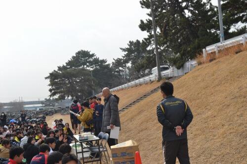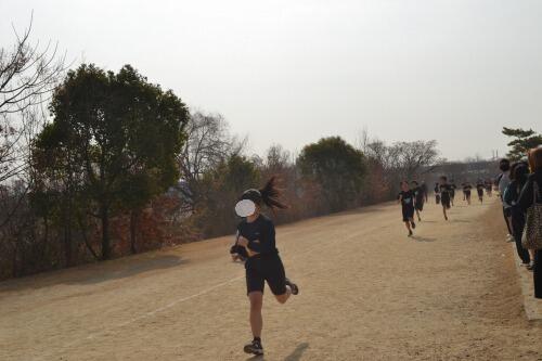 女子は5キロ、男子は倍の10キロの直線コースを、武庫川を横に見ながら走りました。男子は折り返し地点で、マジックで手に印をつけてもらって、さらに5キロ頑張って走りました!