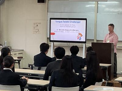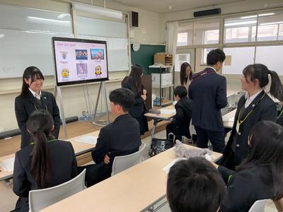 3人のALT(ジャロッド、ジェニー、カート)と2,3年生の温かいサポートで、緊張感も和らぎ、英語を使って、和気あいあいと交流ができました。ゲームが終わる頃には、英語を使うことにも慣れてきたようです。