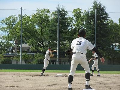 8月22日(日)鳴尾浜臨海野球場で2回戦がおこなわれ、尼崎北高校と対戦しました。先発の谷村(75期)もコントロールに苦しみながらも4回まで無失点と力投します。しかし5回、相手校の先頭打者を安打で出塁させると、四球や失策などで1点を奪われてしまいます。本校も反撃しようと何度もチャンスを作りますが、得点することができず、0-3で負けてしました。