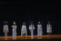 12月14日(日) 兵庫県立こどもの館 生活情報科が、【こどもフォトスタジオ】と【播州織ファッションショー】を行いました。 生徒が作った衣装を選んで、生徒がヘアメイクをして、クリスマス・フォトブースで写真を撮りました。可愛いドレスにメイクでおしゃれをした女の子たちがとても喜んでくれました。赤ちゃんや男の子もマントなどクリスマス衣装で撮影しました。 14:30から播州織ファッションショーを行いました。