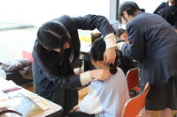 生徒が作った衣装を選んで、生徒がヘアメイクをして、クリスマス・フォトブースで写真を撮りました。可愛いドレスにメイクでおしゃれをした女の子たちがとても喜んでくれました。赤ちゃんや男の子もマントなどクリスマス衣装で撮影しました。
