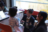 使用した金ゴマは、日野小学校の児童が栽培したものです。高校生と一緒に粉を振るって材料を混ぜ合わせたり、丸めて成型にする作業もうまく出来ていました。オーブンで金ゴマクッキーを焼いている間に、洗い物をしたりラッピング袋を楽しそうに選んでいました。高校生も担当班の児童に優しくわかりやすく教えていました。