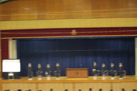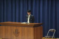 選挙管理委員長の朝井凰さんから挨拶がありました。続いて各立候補者から西脇高校をこれからどのようにしたいのかを公約を掲げて堂々と演説を行いました。