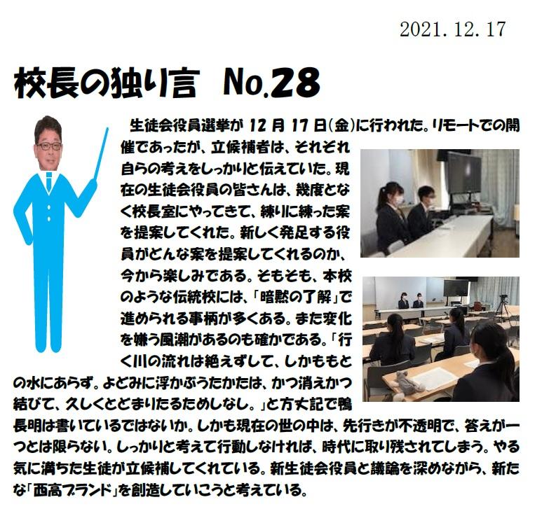 夏休み後半、2年生有志が母校の中学校を訪問し、本校のPRをしてくれました。2名1組となり、まずは中学校へアポをとる。日程調整し、8月23日から学校案内とポスターを持って、懐かしい母校を訪問し、楽しい時間を過ごしました。「何かを紹介する際には、それを理解し、自分の経験を交えながら話すことで初めて説得力につながると感じた」「西高の魅力をたくさん伝えることができた」「話を聞いてくださった先生が西高出身ということもあり、西高の今と昔で大変盛り上がった」「先生にではなく、次は中学生に直接伝える機会があればと感じた」などの感想があり、今回の企画でまたまた大きく成長したことがうかがえました。何はともあれ、話を聞いてくださった中学校の先生方に心より感謝申し上げます。そして、「西高で楽しい高校生活を送ろう!」と中学生に宣伝していただければ幸いです。