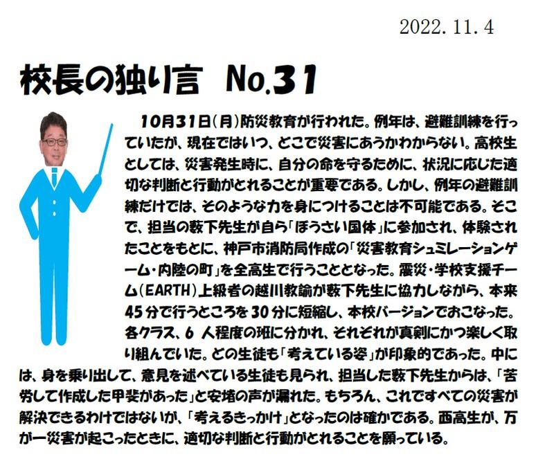 2学期が始まりました。始業式の式辞では、緊急事態宣言発出中を受けて、感染症対策をさらに強化し高校生活を送ろうと伝えました。また2学期の校長からのミッションは、① SNSでの情報収集は、根拠のない話はそのまま信じるのではなく、真偽をしっかりと確かめること。② 他人に大事な話を伝えるときには、対面で根拠を示しながら、論理的に話すこと。として、しっかりと実践するようにと話しました。さらに、表彰伝達式では、数多くの活躍した生徒に表彰状を渡すことができました。特に、ソフトボール部は東播大会優勝と今後ますます活躍が期待され、ずっしりと重い優勝旗を手渡すことができ、喜ばしい限りでした。2学期もすべての生徒がいきいきと笑顔で高校生活を送ってくれることを願っています。