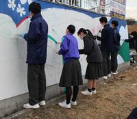 美術部の生徒が現在、野村町の株式会社藤本糧穀様の壁に壁画アートを制作中です。完成すると平野口交差点から見ることができます。まもなく完成予定です。
