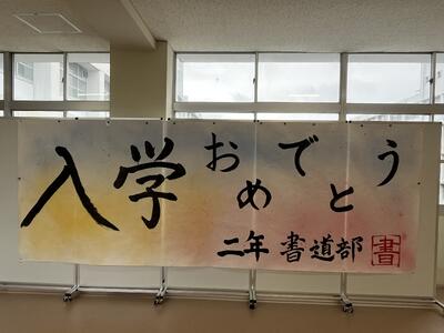 書道部からは、新入生へエールを込めた大作が展示されています。2年生による【入学おめでとう】の温かい言葉と、3年生による【桜花とともに走り出す咲く道を自分で選べ】という力強いメッセージ。一筆一筆に込められた熱い思いが、これからの高校生活への期待を膨らませてくれます。