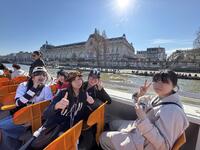 春らしく良い天気の中、セーヌ川クルーズや、エッフェル塔、凱旋門、プティ・パレ(近代美術館)の観光を楽しみました。小さな失敗はありますが、全員元気に一日を終えました。