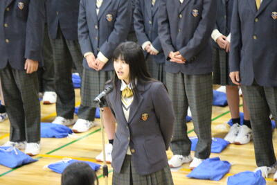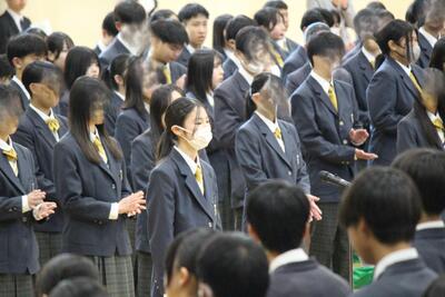 全校生徒が参加する中、生徒会執行部の進行により式が執り行われました。少し緊張した面持ちで入場した1年生を、在校生が温かい拍手で迎えました。