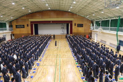 4月9日(木)本校体育館にて新入生と在校生が初めて一同に会する「対面式」を実施しました。