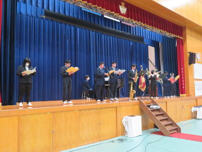 2月24日(火)、同窓会入会式と表彰伝達の後、卒業式予行が行われました。本番を翌日に控えた緊張感の中、全校生徒で所作の確認や歌唱練習を行いました。予行終了後は、生徒会主催の「卒業生を送る会」が開かれ、卒業生に向けたメッセージ動画のほか、吹奏楽部と音楽選択者有志による演奏が披露されました。西脇北高校で過ごした思い出を振り返りながら、卒業式本番への気持ちを高めていく時間になりました。