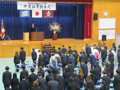 あいにくの空模様にも関わらず、本校卒業生のために多くの来賓と保護者等の方々が参列してくださいました。誠にありがとうございました。また、在校生も厳粛な態度で臨み、素晴らしい雰囲気を作り出してくれました。