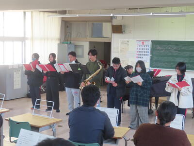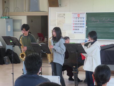 12月10日(水)、音楽選択クラスの有志と吹奏楽部によるクリスマスコンサートが行われました。フルートとテノールサックスのソロ演奏のほか、クリスマスにちなんだ曲の合奏と合唱が披露されました。心地よいハーモニーが音楽室いっぱいに響き渡り、クリスマスの到来を予感させる幸せな空気に包まれました。