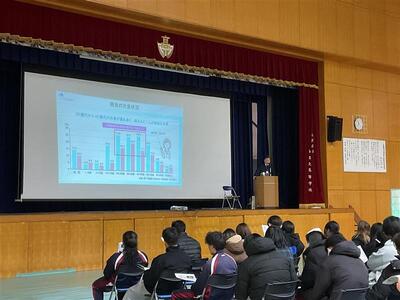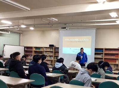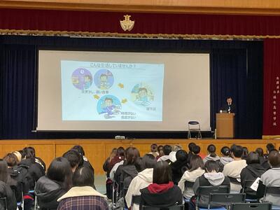 12月10日(水)1・2部4時間目、3部10時間目に、大塚製薬株式会社 宮本利夫様による「カラダに大切な栄養について考える~日々の食生活を整え健康に生きる~」というテーマで食育講演会を実施しました。