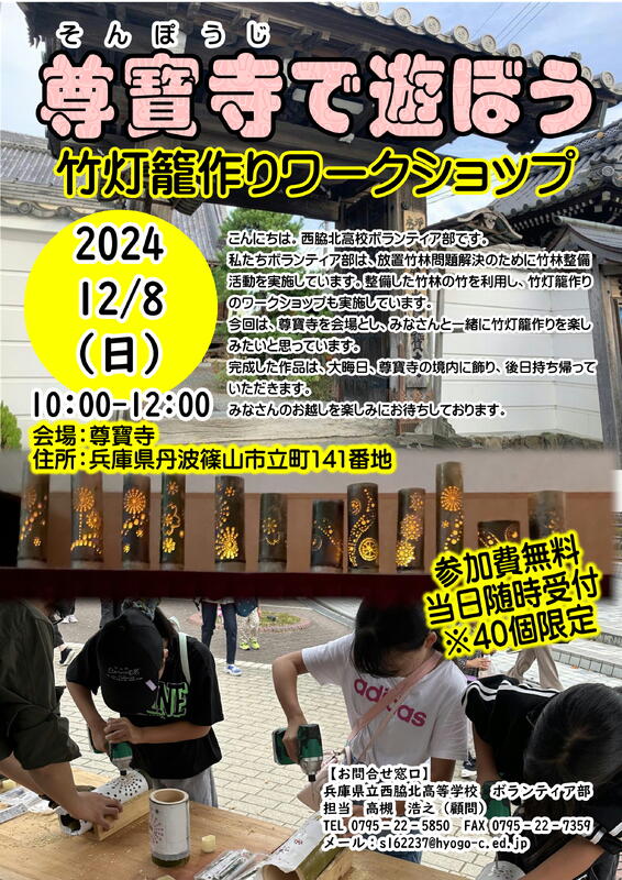 ボランティア部 竹灯籠作り&播州織のし袋ワークショップ