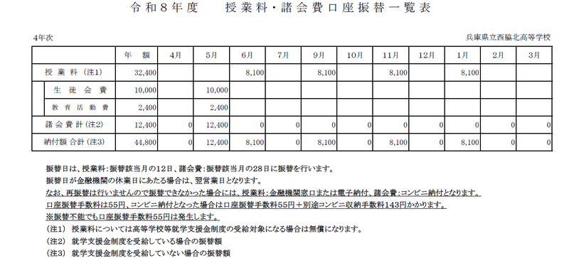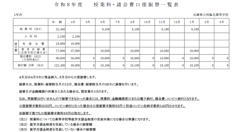 令和8年度学校徴収金について