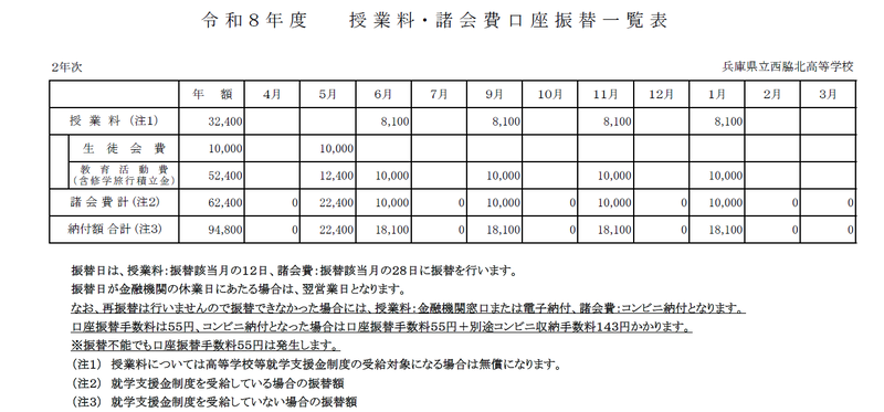2年次口座振替一覧