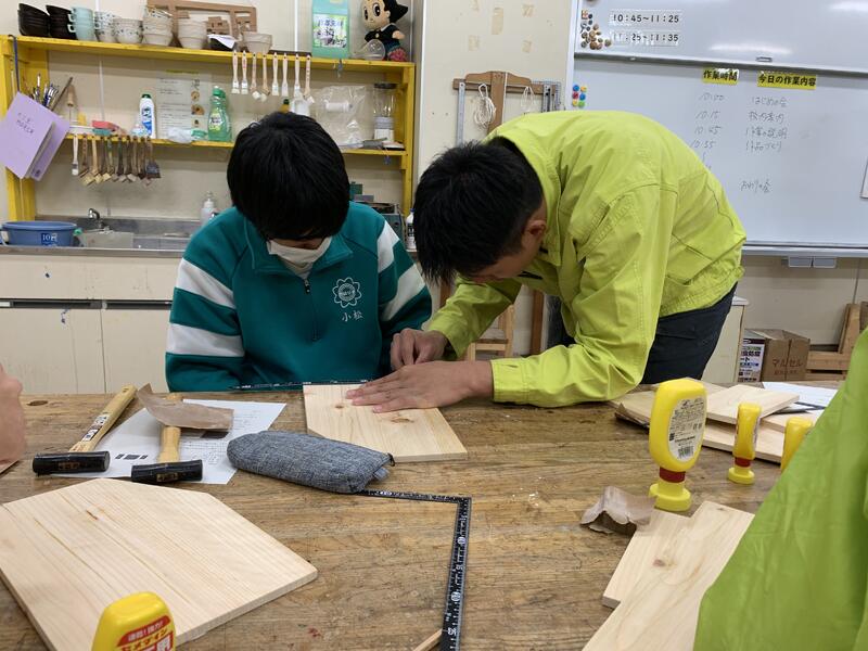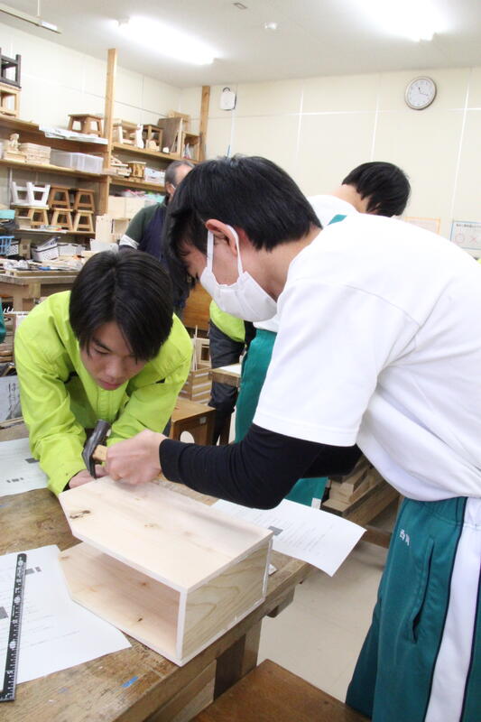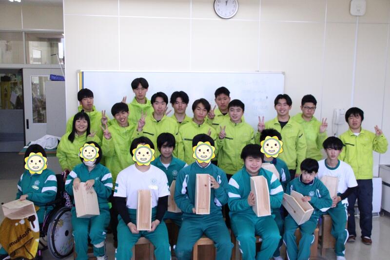 11月26日(水)、県立山崎高等学校 森と食科 森林環境類型の3年生が、本校に来校されて木工班と作品作りをしました。