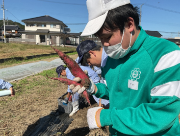 10月23日(木)県立佐用高等学校との交流及び共同学習を行いました。本校からは高等部1・3年生の5名が参加し、サツマイモ(鳴門金時・紅はるか)の収穫をしました。5月の苗植えの時を思い出し、お互い緊張なく和やかな雰囲気でコミュニケーションをとりながら活動できました。閉会式では、積極的に各校の特徴などを質問し合い楽しい雰囲気で交流及び共同学習ができました。
