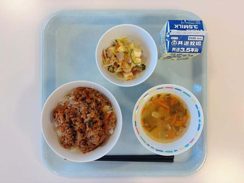 今日の給食は、見た目も楽しめる彩り豊かなメニューでした。
