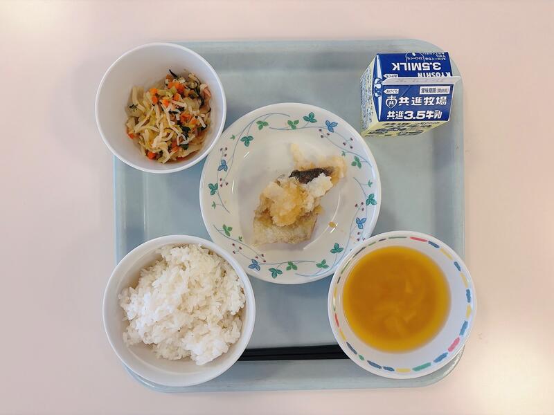 今日の給食は、かぼちゃとゆずを使った献立でした。